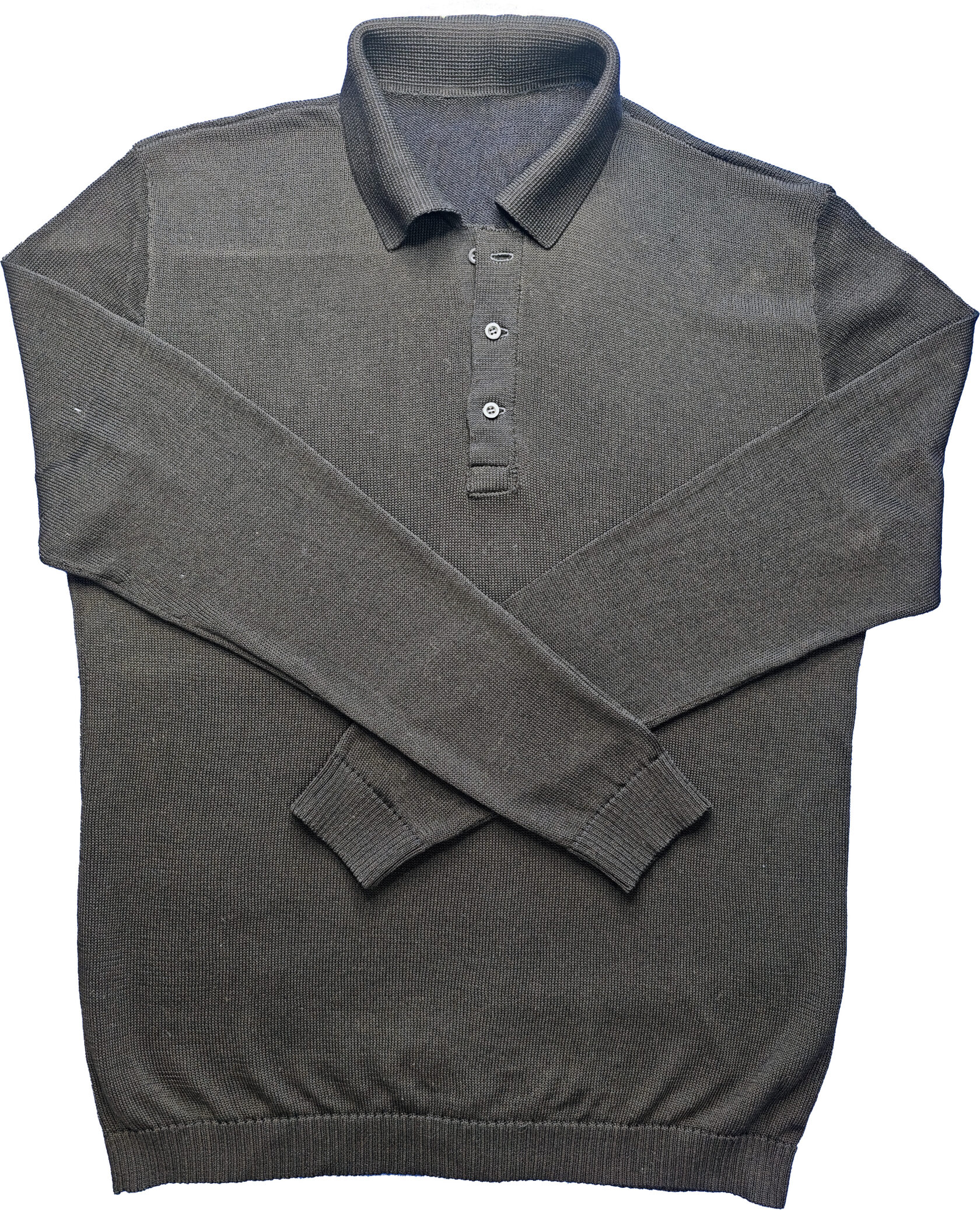 Тонкая рубашка благодаря эластичной вязке прекрасно ложится на фигуру. Едва заметный шелковый блеск. Плотный воротник можно носить как отложной или как воротник-стойку. Размер XXL.