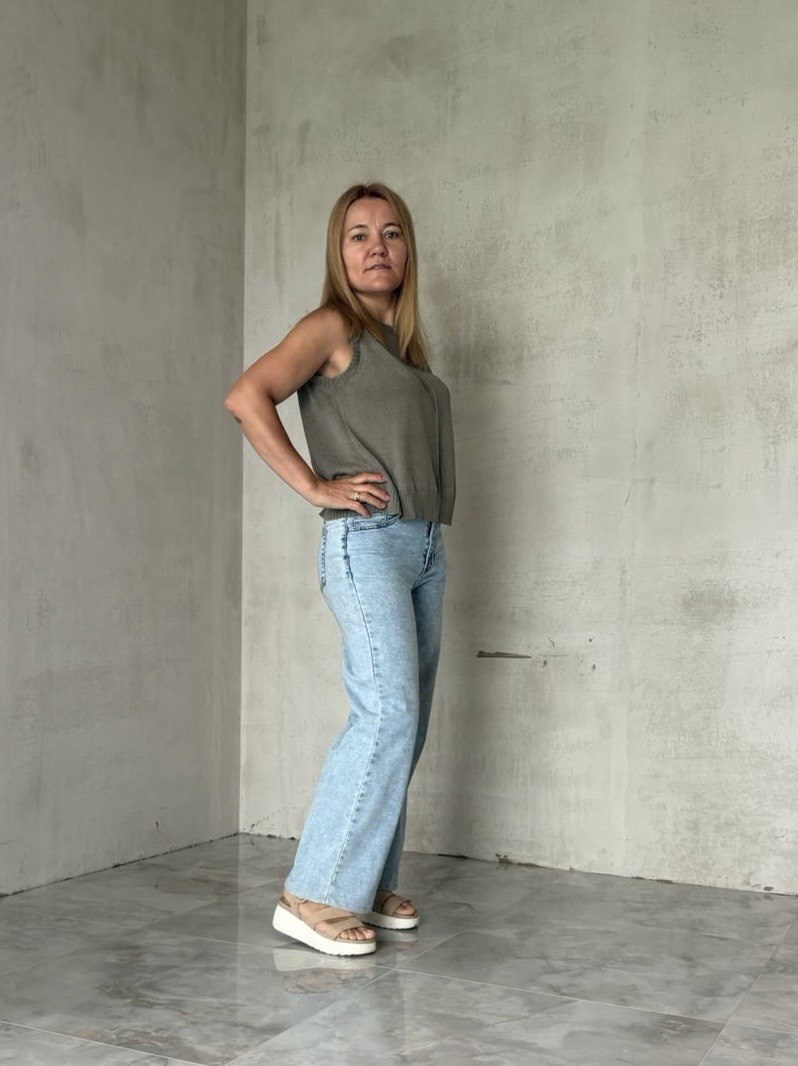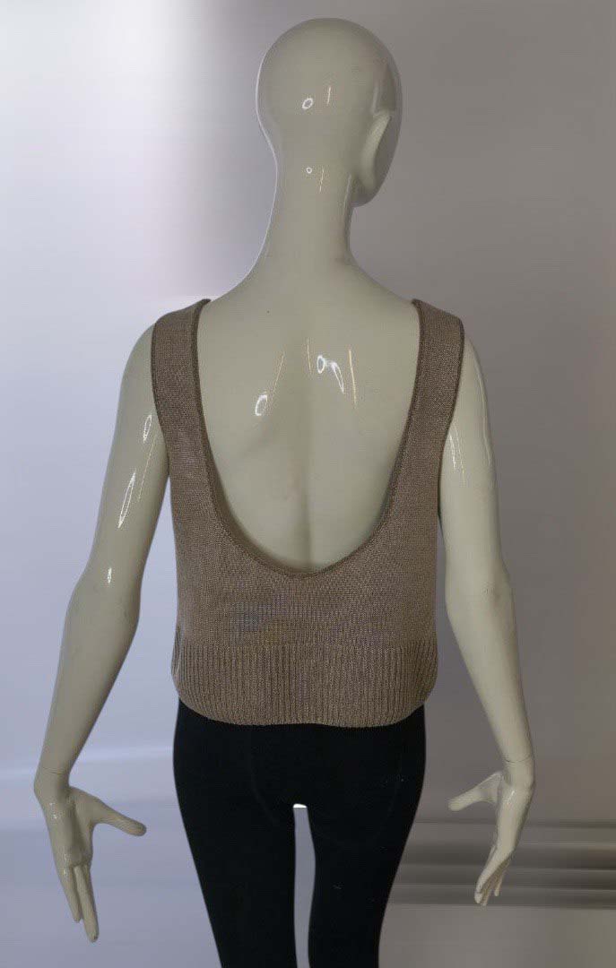 Легкий топ с открытой спиной и глубокой проймой подойдет для отдыха на пляже. Натуральный 100% лен защитит зону декольте от палящего солнца, а открытая спина добавить нотку пикантности.