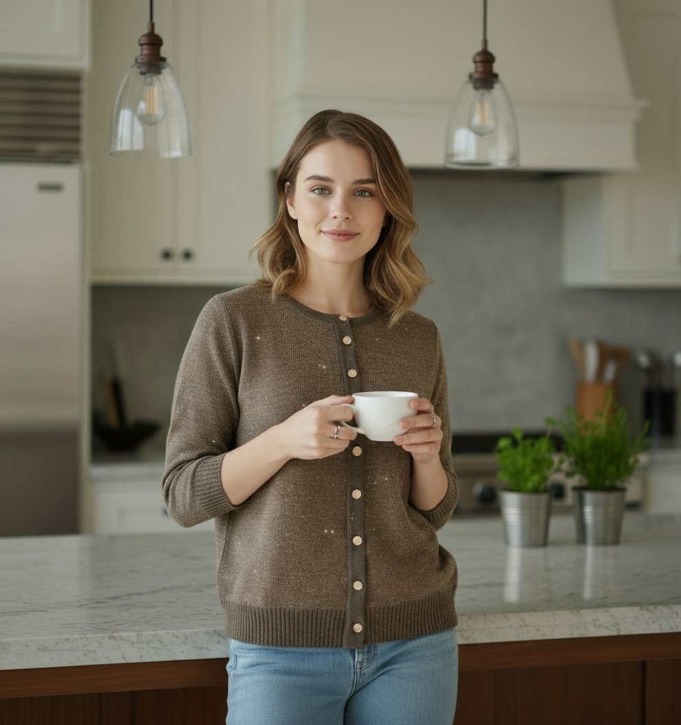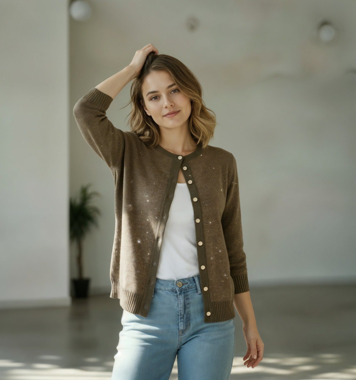 Просторный силуэт этого кардигана создаёт эффект расслабленности и комфорта, идеально вписываясь в современный casual-стиль. Модель отличается свободным кроем, который не стесняет движений и позволяет создавать многослойные образы. Удлинённые рукава — главная особенность модели. Они закрывают руки практически полностью, обеспечивая дополнительное тепло и комфорт в прохладную погоду. Такой фасон особенно актуален в межсезонье, когда важно сохранить тепло, но при этом выглядеть стильно.